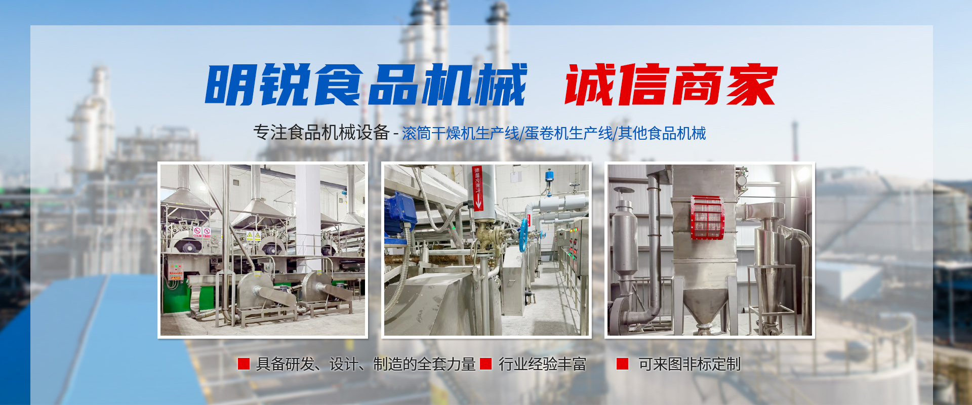 東臺(tái)市明銳食品機(jī)械有限公司是一個(gè)從事食品機(jī)械設(shè)備設(shè)計(jì)、制造和安裝調(diào)試的專業(yè)廠家,在食品生產(chǎn)工藝、生產(chǎn)流程及設(shè)備設(shè)計(jì)和制造有著多年豐富經(jīng)驗(yàn)。主要產(chǎn)品有蛋卷機(jī)生產(chǎn)系列,滾筒干燥機(jī)生產(chǎn)線系列以及其他食品機(jī)械。目前各種生產(chǎn)線規(guī)格齊全,國內(nèi)技術(shù)優(yōu)良,產(chǎn)品遠(yuǎn)銷亞洲各國及國內(nèi)二十多個(gè)省市自治區(qū)。
